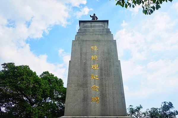 1928年11月,军校师生为了纪念孙中山,就在中山公园的八卦山上捐资兴建了孙中山纪念碑,1930年9月26日建成,同年5月,孙中山的好朋友梅屋庄吉将孙中山铜像护送来广州,安放在40米高的碑座上,总理铜像高2.6米,重逾2000斤,纪念碑的造型非常独具匠心,利用两边交叉而上的阶梯及铜像,构成了“文”字,暗含了孙文的意思。