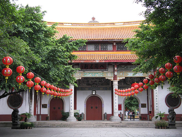而现在的建筑是清光绪三年重新建造的,双层翘檐,中间为厅堂,旁边两侧为客房。